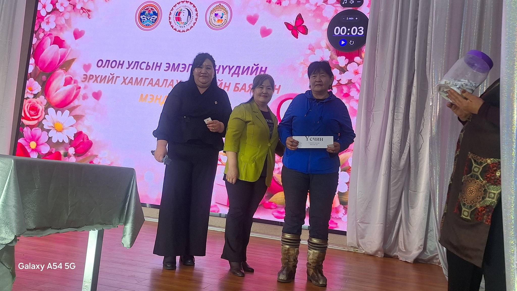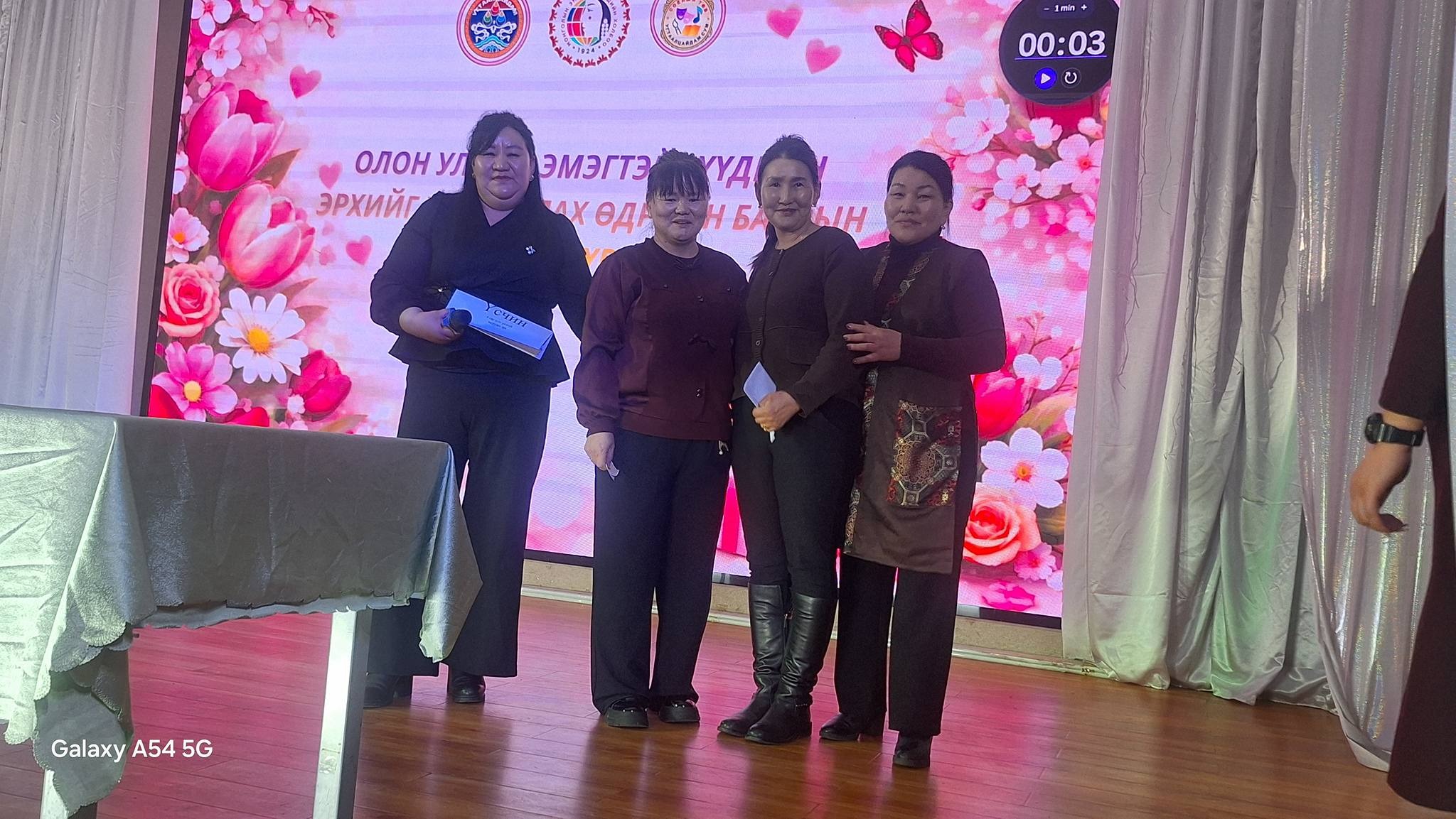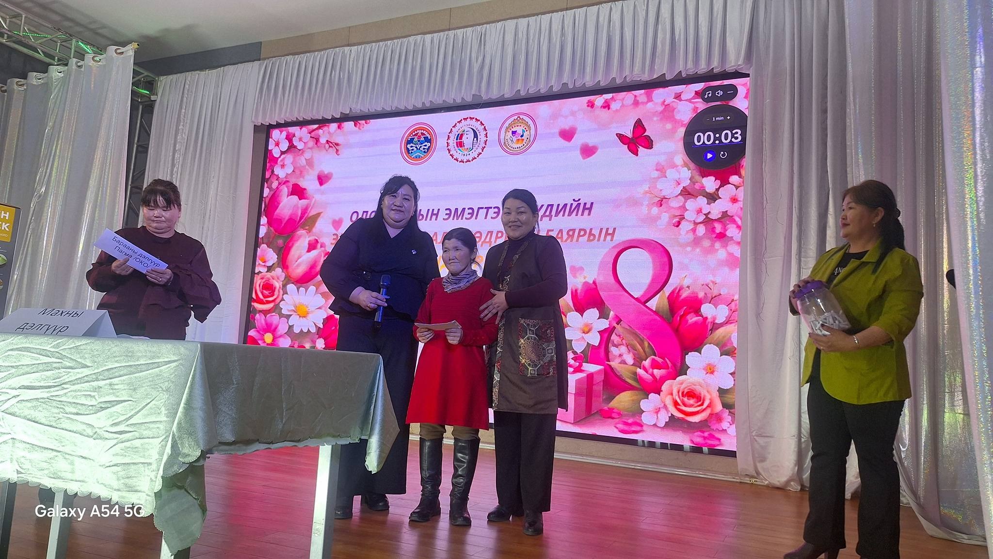 Хамтран ажиллаж, дэмжиж тусалсан Сумын Засаг дарга, ЗДТГ-ын Дарга, ИХ-ын Дарга, ИХ-ын Төлөөлөгчид, ЗДТГ, Сургууль, Цэцэрлэг, Соёлын төв, Эрүүл мэндийн төв, Цаг уур, Төрийн банк, Хаан банк, Петровис ШТС, Эрчим хүчний Удирдлага, Хамт олон, Худалдаа үйлчилгээ эрхлэгчид, Жижиг дунд үйлдвэрлэл эрхлэгчид, Сумын ИХ-ийн Төлөөлөгч, Сумын ЭХ-ны тэргүүлэгч Д.Сумьяа, Сургуулийн номын санч сумын ЭХ-ны салбар зөвлөлийн тэргүүлэгч С.Чулуунцэцэг, Сумын мянгат малчин А.Мөнхбаатар, "Yaru flora" mini дэлгүүр, Нийт бүсгүйчүүдэд зохион байгуулалттайгаар үйлчилгээ үзүүлсэн Сумын Засаг Дарга, ЗДТГ-ын Дарга, ЗДТГ-ын эрчүүд, Иргэдийн хурлийн Дарга, Эрэгтэй төлөөлөгчид, Сумынхаа ЭХ-ны тэргүүлэгчид та нартаа баярлаж талархсанаа нийт эмэгтэйчүүдийнхээ өмнөөс илэрхийлье.